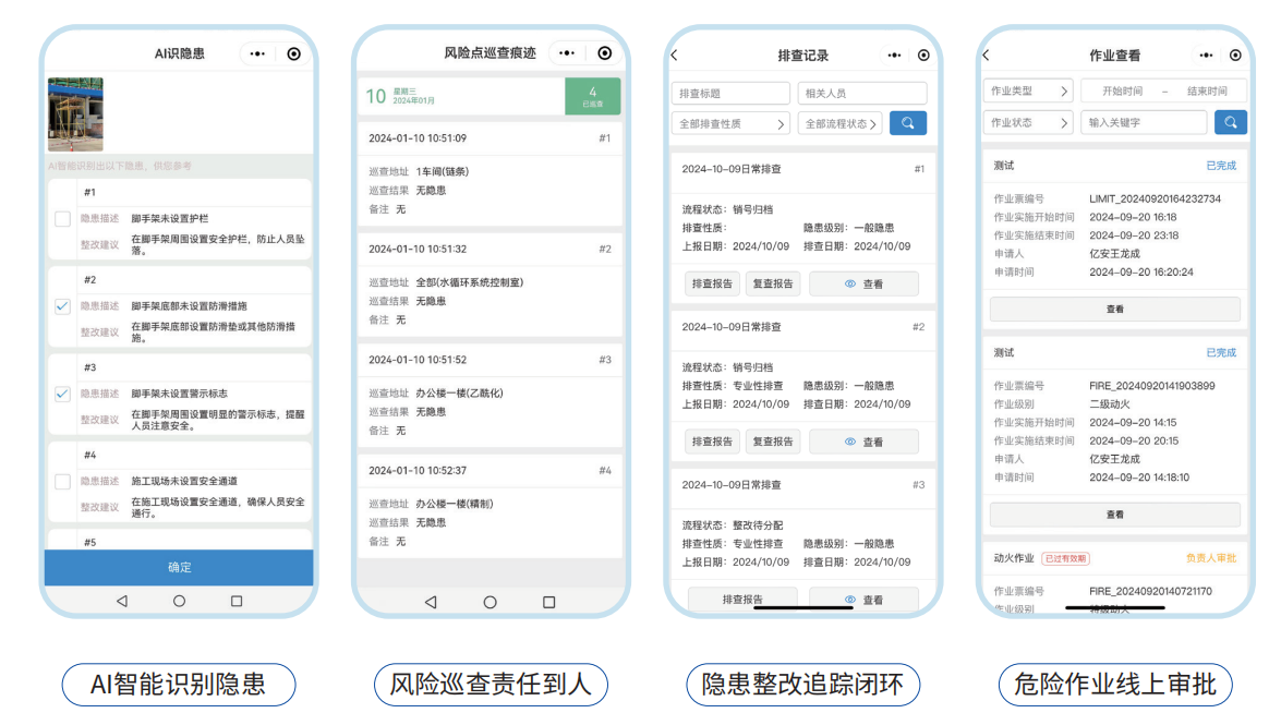 通過信息化流程運轉(zhuǎn),借力班前會管理、風險巡查、隱患排查、工作待辦事項提醒等,有序規(guī)范日常工作執(zhí)行流程,實現(xiàn)安全管理合法合規(guī),降低企業(yè)安全管理經(jīng)營風險。
