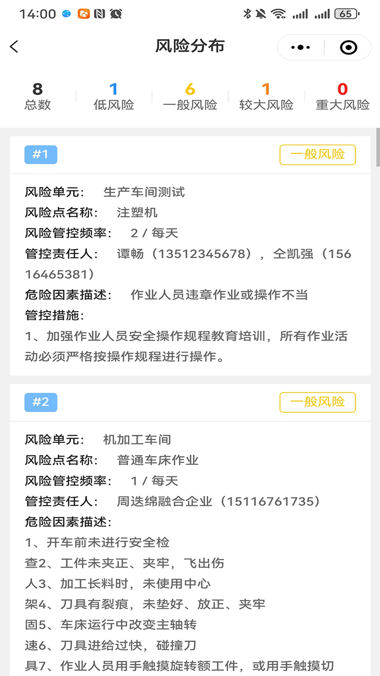 風險分級管控,對應(yīng)管控層級、管控頻次、管控責任人、管控措施等一目了然,責任落實到人。
